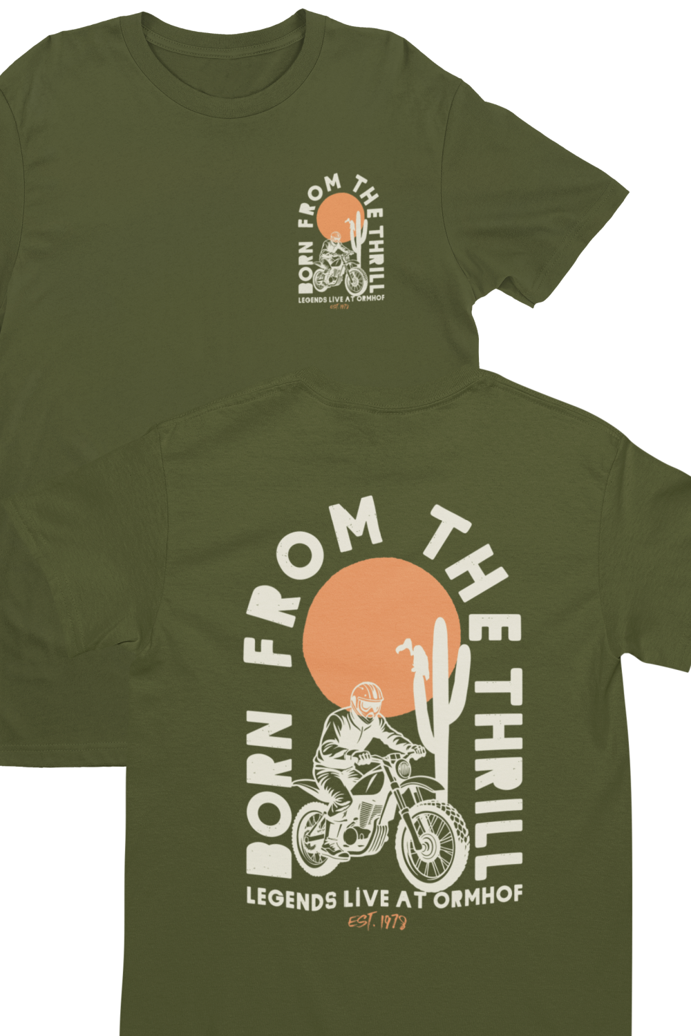 Rev up your style with our "Born from the Thrill" T-Shirt, perfect for adventure enthusiasts and off road lovers. This classic fit tee, featuring a bold graphic of a Dirt Bike, captures the essence of freedom and the open road.