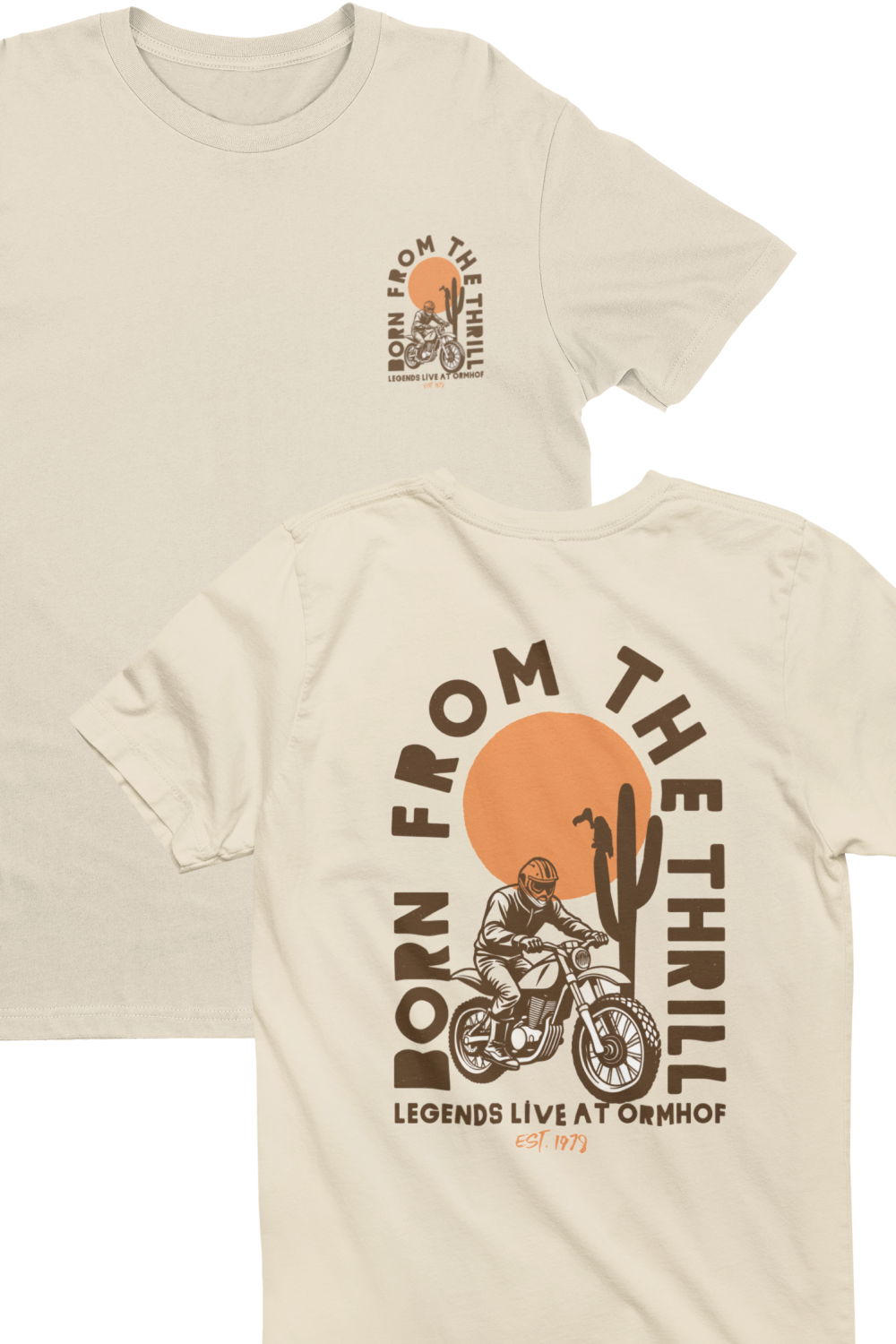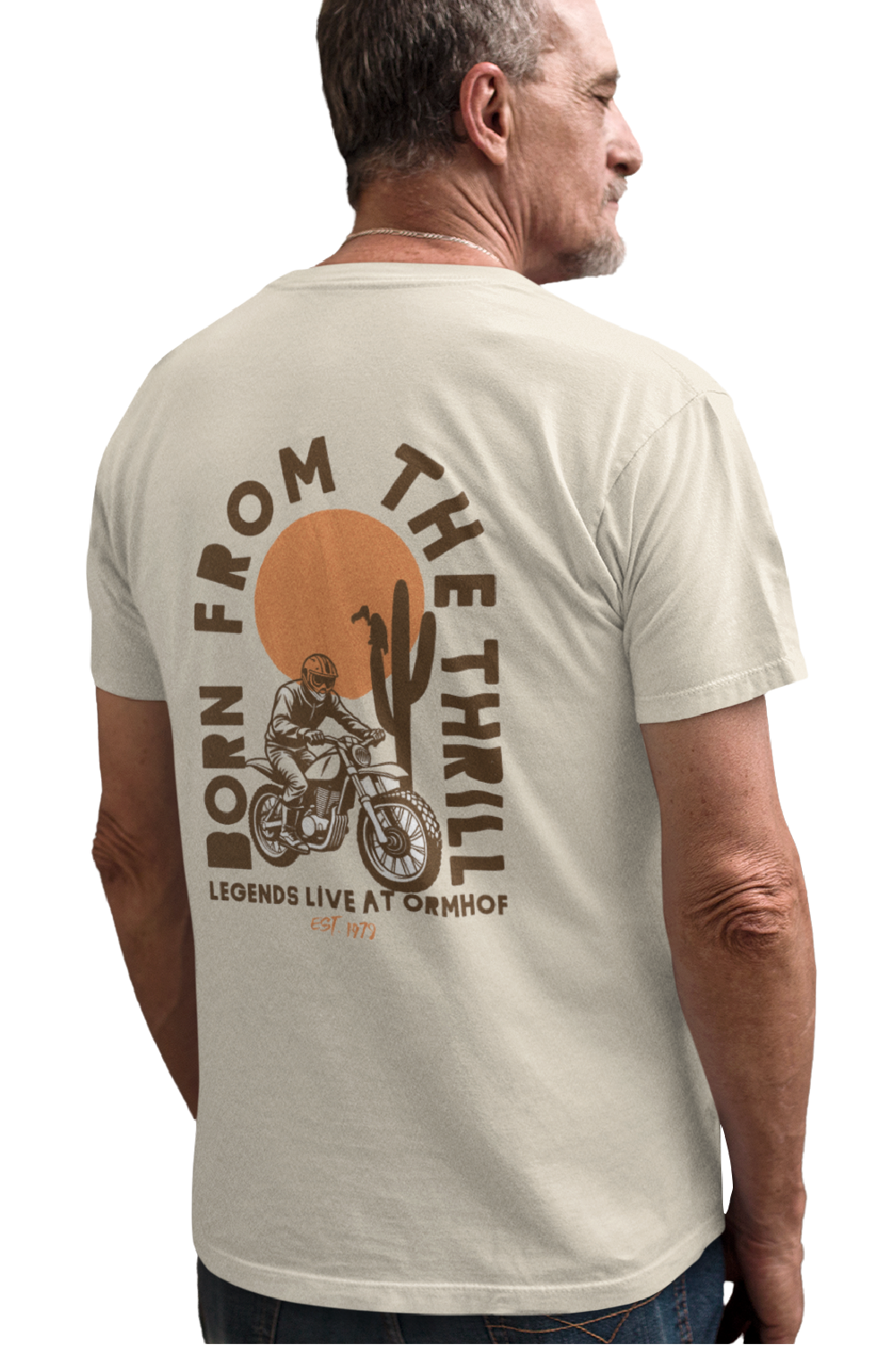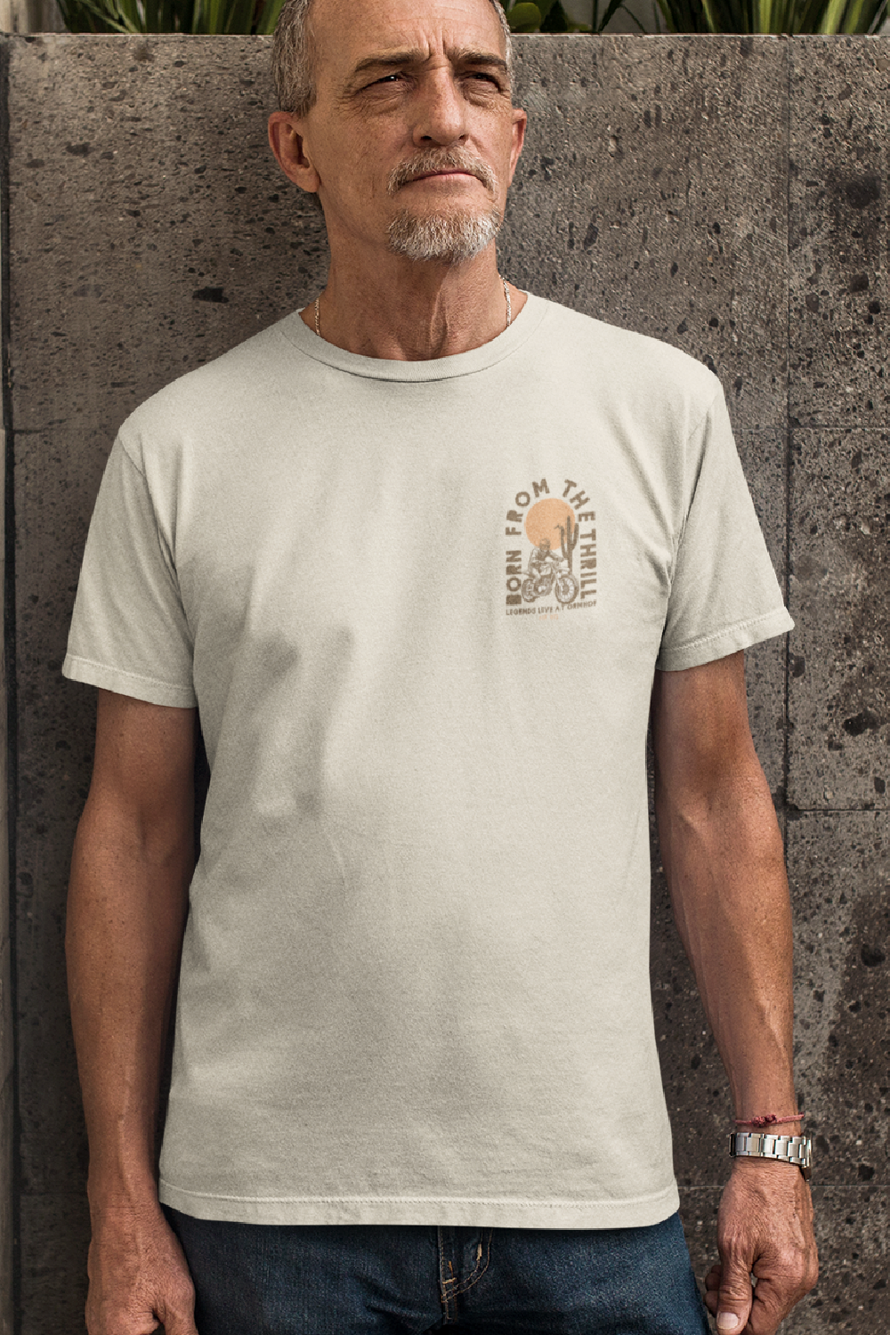 Rev up your style with our "Born from the Thrill" T-Shirt, perfect for adventure enthusiasts and off road lovers. This classic fit tee, featuring a bold graphic of a Dirt Bike, captures the essence of freedom and the open road.